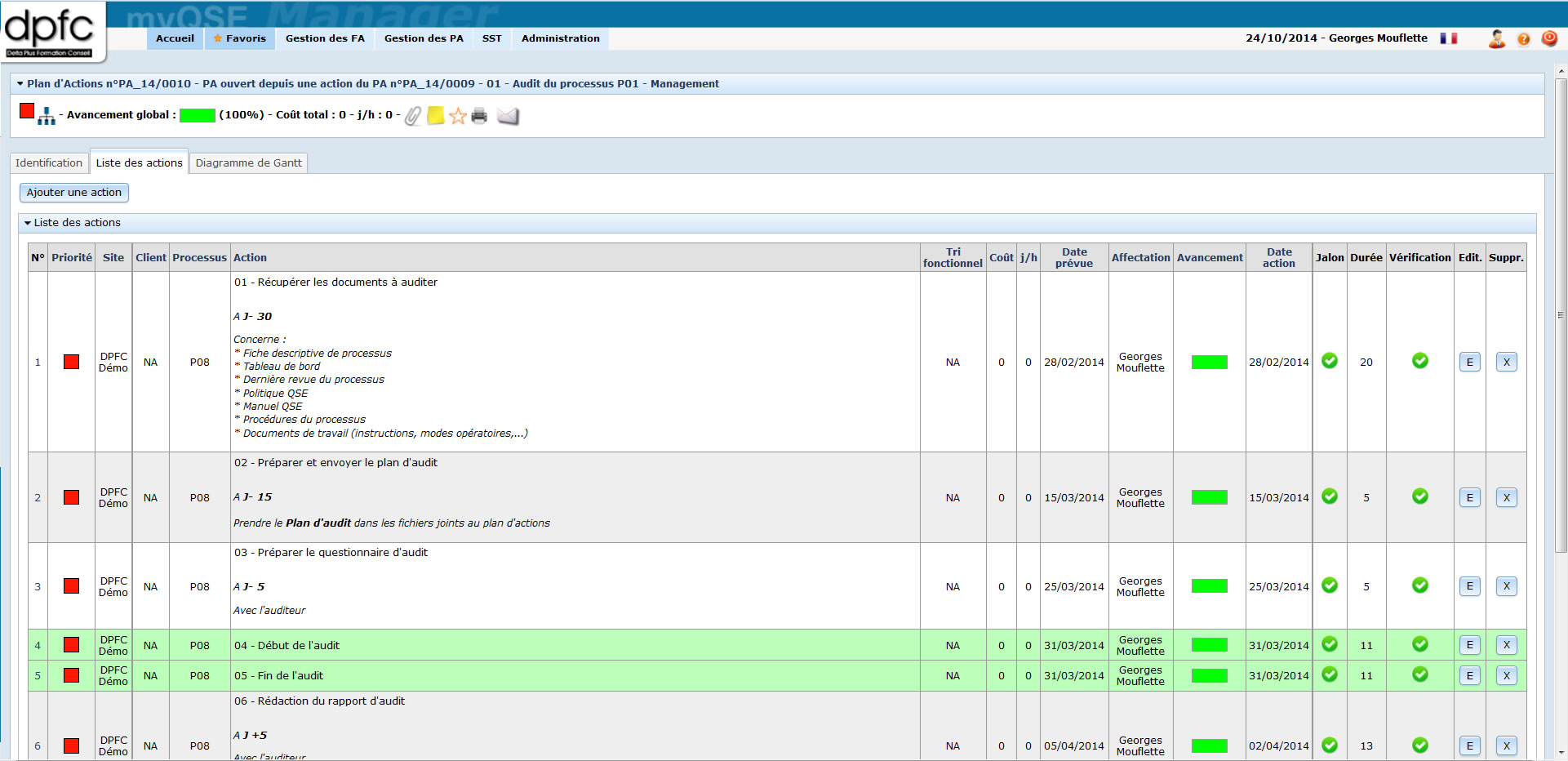- une check-list de mise en place et de suivi de chaque audit interne créée à partir d'un modèle de Plan d'Actions
